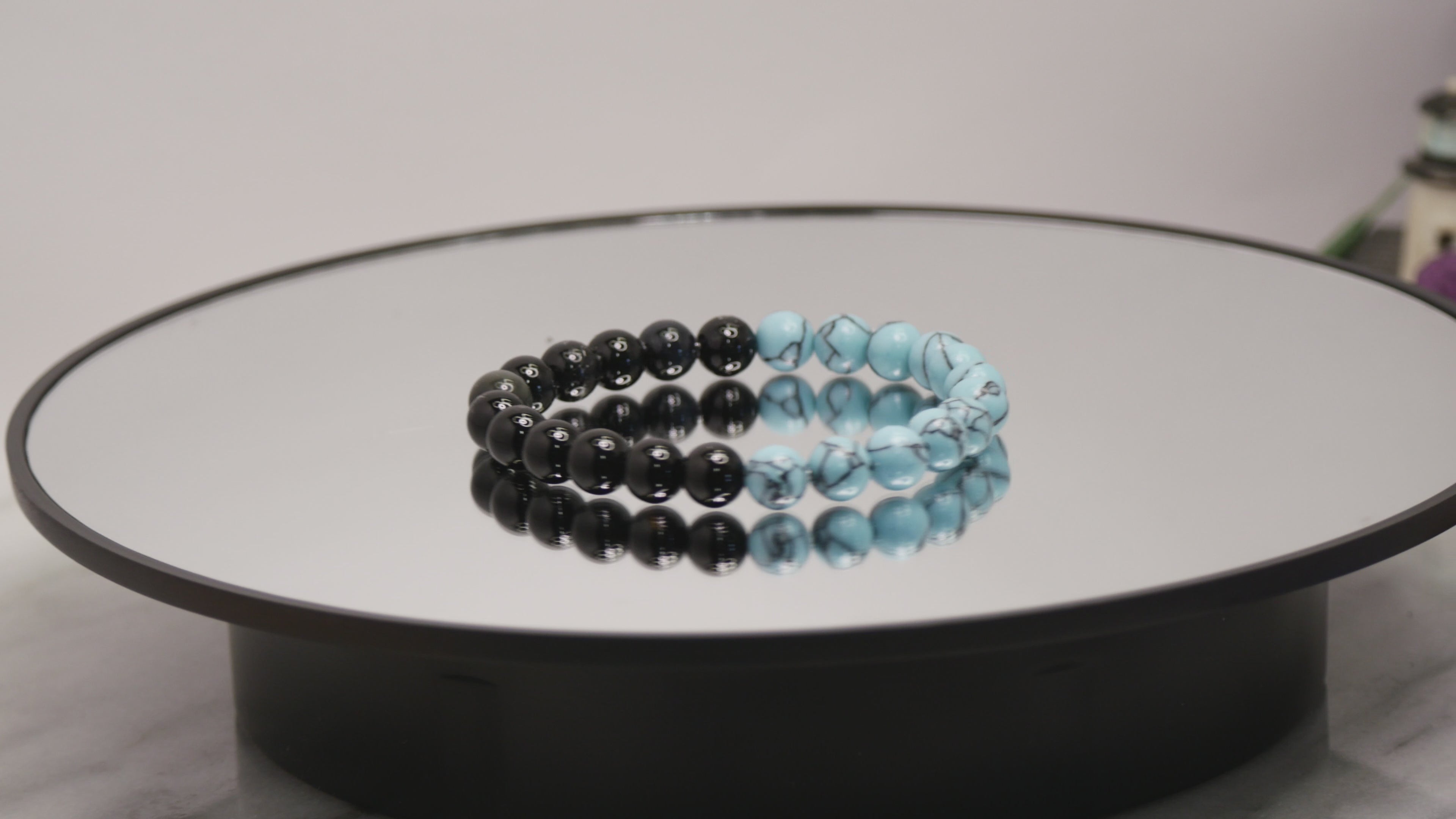 Black Onyx and Turquoise 8mm Stretch Beaded Bracelet